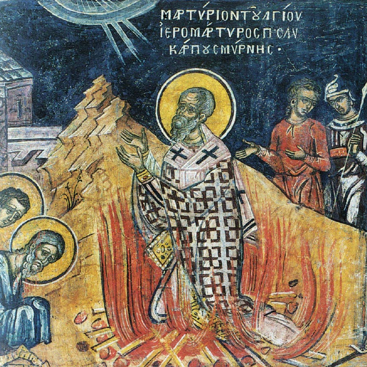 St. Polycarp was the Bishop of Smyrna and one of the three chief Apostolic Fathers—those who were taught directly by the Apostles. A student of the Apostle John, Polycarp served as a vital living link between the first generation of believers and the emerging Church of the second century. In AD 155, at the age of 86, Polycarp was captured by Roman authorities. When urged to save his life by cursing Christ, he gave his most famous witness: “Eighty-six years I have served Him, and He has done me no wrong. How can I blaspheme my King and my Savior?” He was sentenced to be burned at the stake, but tradition holds that the flames arched around him like a sail, leaving him unharmed, until he was finally dispatched by a dagger.